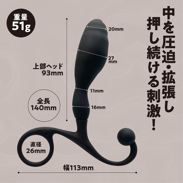 | 尻にいいアイカスにブラックバックシリーズが新登場!プレッシャーはその名の通りシリーズ最大径の27mmと拡張も視野に入れた初中級者モデル。 シリコン部の全長140mm上部ヘッドは93mmと中を圧迫できます。 会陰ボールも搭載しておりドライオーガズムを体験する第一歩のグッズとして最適です。 |