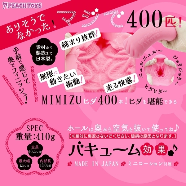 | KAKU−MEIKIシリーズの「ミディアム」バージョン「KAKU−MEIKI MEDIUM ミミズ400」が登場!ミミズ千匹とは「ヒダが多く存在している名器の例え」なのは広く有名です。 では「実際に多くのヒダヒダを配置したらどんな感触なのか?」を、艶やかに「ミミズ400匹」で作り上げました。 無数に配置されたヒダが包み込みながら挟み込む!●STD |
