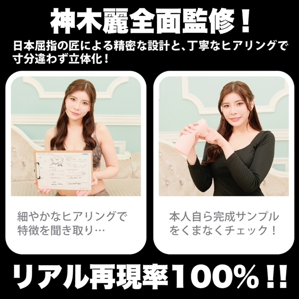 | 精密3Dスキャン技術を駆使して神木麗さんの美しいフェイスラインとリップを再現したオナホールです♪外観の美しさとともに、内部も緻密に設計されており、まるで本人と対面しているかのようなリアルな感覚が楽しめます!500g超のボリューム感と、人工粘膜による2層構造が心地よいフィット感を提供し、快適な使用感を実現♪フェラの技術を感じる構造で、奥深いところまで楽しむことができます!タイプは非貫通で、しっかりとした刺激が感じられる仕様です♪ |