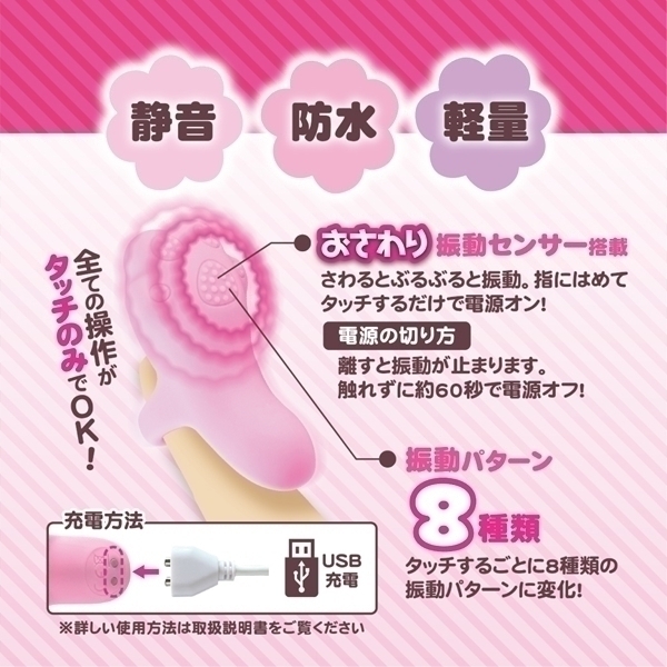 | 触れるだけで動き出す新感覚のタッチセンサー搭載アイテムです!全ての操作がタッチのみで完結するので、簡単で直感的な操作が可能♪指にはめて触れると振動がスタートし、触れるたびに振動パターンが変化します!離すと自動で停止し、触れずに約60秒経過すると電源がオフになる省エネ設計♪本体は33.5gの超軽量設計で、持ちやすく疲れにくい仕様!高品質なシリコンボディを採用し、防水性能と静音性も兼ね備えています♪使いやすさと機能性を両立したハイスペックな一品!日常のリラックスタイムや特別なひとときにぴったりのアイテムです♪ |