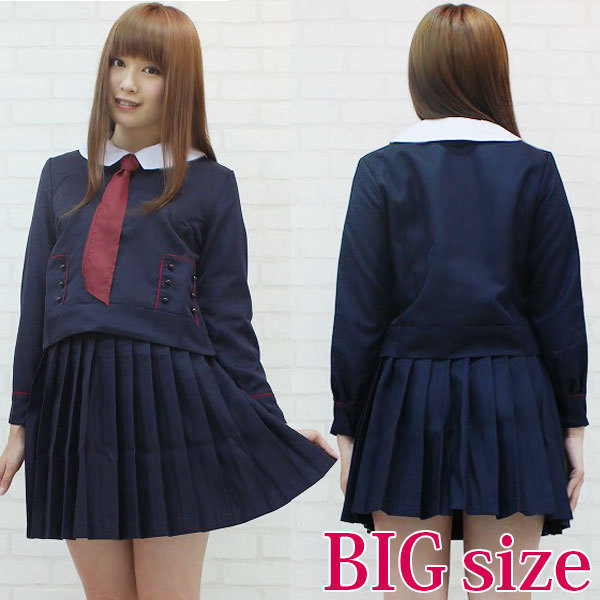 | 白襟とエンジ色のスカーフがベストマッチ!可愛い濃紺の制服コスプレセット(BIG)。 丸首が可愛い冬服タイプのトップスはサイドファスナー仕様、白襟はスナップボタンで取り外し可能!トップス両サイドにはエンジ色のパイピングの中に、6つのボタンをあしらった飾りポケット付き!プリーツスカートはアジャスターで調節可能です。 素敵なお嬢様を思わせる、デザイン性に富んだ大きめサイズの制服コスチュームセットです。 ※水洗い不可、塩素系漂白剤による漂白不可、アイロンは中温で当て布使用、ドライクリーニング可、色落ちの可能性があります。 ※こちらの商品は在庫の状況によりお届けまでに4日〜7日程度かかる場合がございます。 |