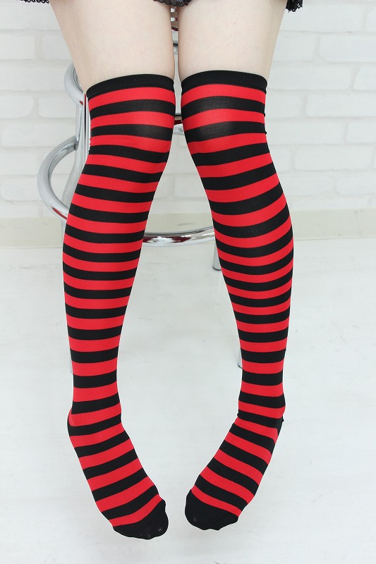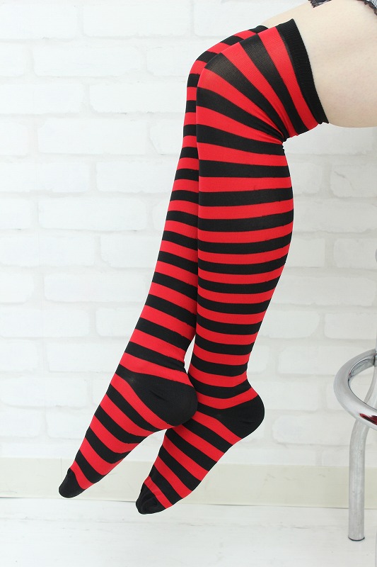 トップページ > コスプレ衣装 > 小道具(ニーソックス・猫耳) > ニーハイボーダー レッド・ブラック 幅1cm
