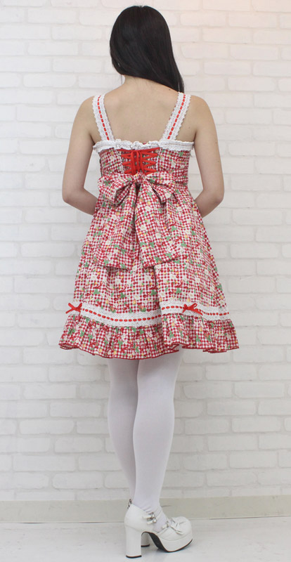 | 真っ赤なチェリー&ベリーでキュートに仕上げた、ギンガムチェックのジャンパースカート(BIG)。 たっぷりのフリルとリボンが超ラブリーなコスチューム!フロントの大きなリボンはピンで取り外し可能ですので、お好きなアレンジを楽しめます。 背面は編み上げ、バックリボンは結ぶ仕様になっています。 ※水洗い不可、塩素系漂白剤による漂白不可、アイロンは中温で当て布使用、ドライクリーニング可、色落ちの可能性があります。 ※こちらの商品は在庫の状況によりお届けまでに4日〜7日程度かかる場合がございます。 |