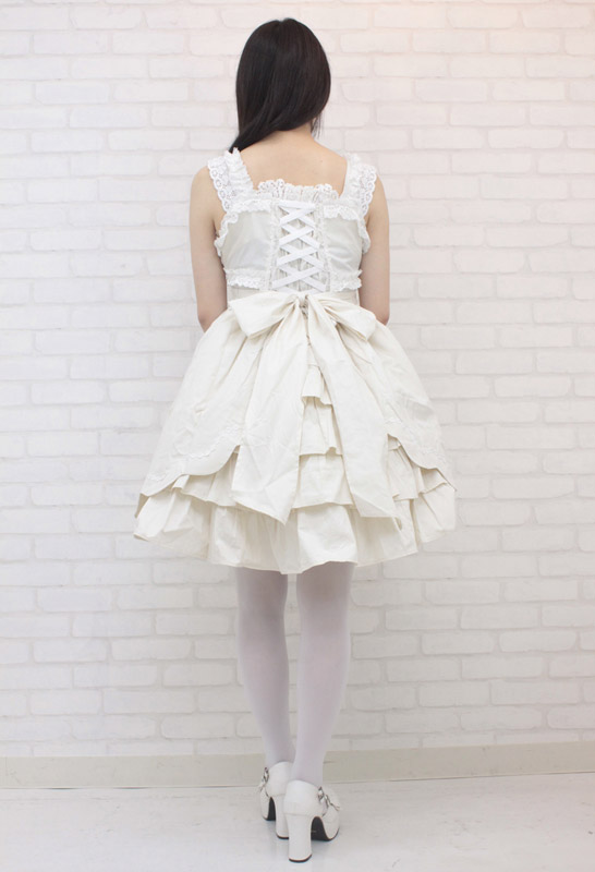 BIGサイズ:B86〜94cm・W76〜84cm 丈:ジャンパースカート94cm セット内容:ジャンパースカート(横ファスナー、後ろ編み上げシャーリング)・リボン(ピンにて取り外し可) |