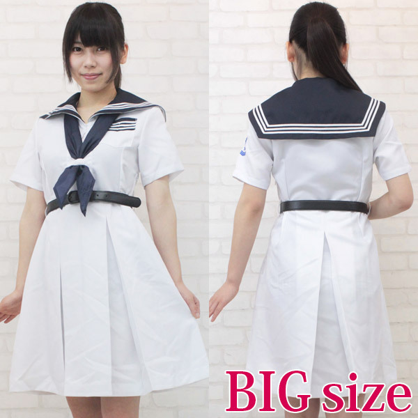 | 真っ白な半袖ワンピースで爽やかに!誰もが憧れるお嬢様学校風のセーラー服コスチューム(BIG)。 ちょっぴり長め丈の夏服ワンピが清楚な印象!ベルトがポイントになるので脚長効果も抜群!もちろん紺色のスカーフもセットです。 ※水洗い不可、塩素系漂白剤による漂白不可、アイロンは中温で当て布使用、ドライクリーニング可、色落ちの可能性があります。 ※こちらの商品は在庫の状況によりお届けまでに4日〜7日程度かかる場合がございます。 |