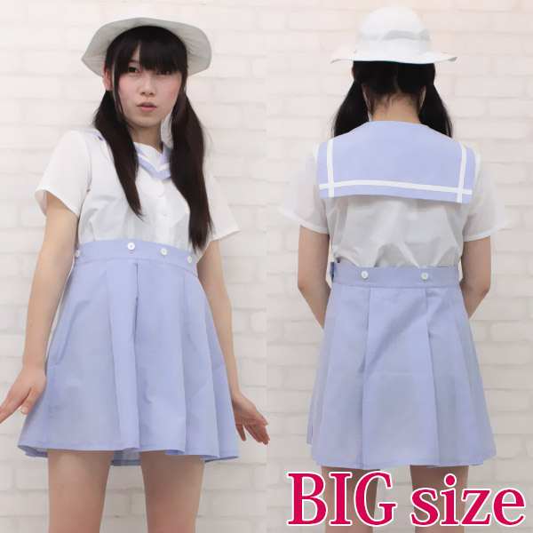| 昔懐かしいゴム付き帽子もセット!淡いブルーが爽やかな夏服タイプの制服コスプレ(BIG)。 セーラー襟の付いた半袖シャツとスカートは、ボタンで繋ぐことが可能!こだわりデザインのキュートな制服コスチュームです。 ※水洗い不可、塩素系漂白剤による漂白不可、アイロンは中温で当て布使用、ドライクリーニング可、色落ちの可能性があります。 ※こちらの商品は在庫の状況によりお届けまでに4日〜7日程度かかる場合がございます。 |