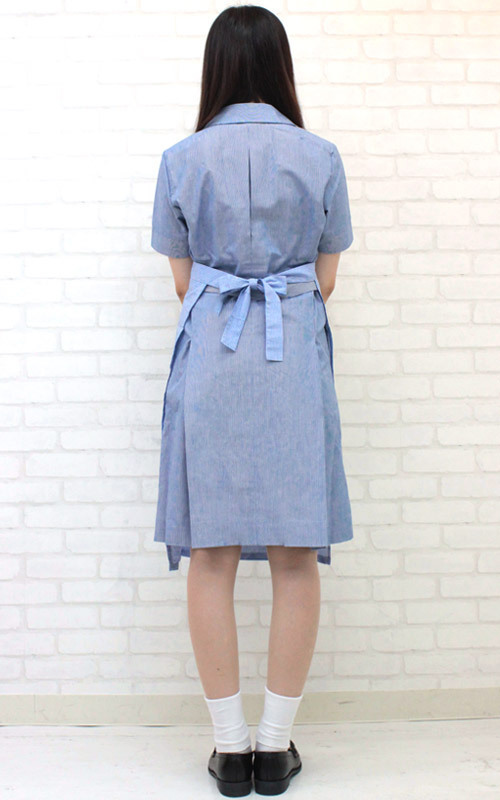 BIGサイズ:B88〜96cm・W76〜81cm 丈:ワンピース99cm(袖丈23cm、肩幅40cm)校内着(ウエスト部分より)72cm セット内容:ワンピース(前ボタン)・ベルト・校内着(エプロン、首元スナップボタンあり) |