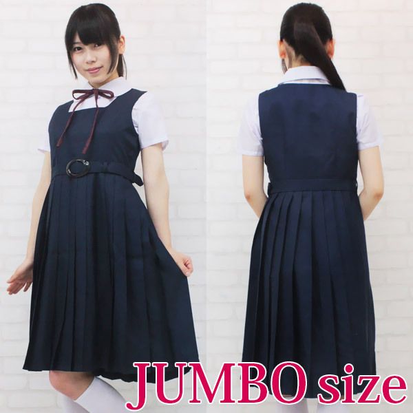 | クラシックな丸襟がとってもキュート!可愛らしい雰囲気のジャンパースカート制服。 こちらは男性でもOKなジャンボサイズ!半袖シャツにジャンスカ、布製ベルトとリボンタイもセットになった、お手軽コスプレ衣装です。 ※水洗い不可、塩素系漂白剤による漂白不可、アイロンは中温で当て布使用、ドライクリーニング可、色落ちの可能性があります。 ※こちらの商品は在庫の状況によりお届けまでに4日〜7日程度かかる場合がございます。 |