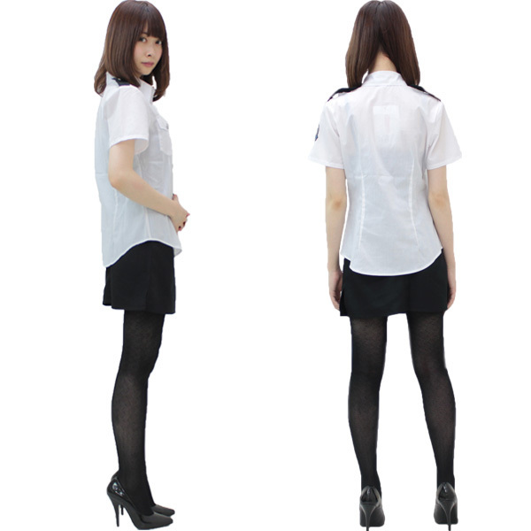 | すっきりとした白黒モノトーンカラーがクールなミニスカポリス衣装。 ●ラウンドテイルの白シャツ●ワッペン&肩ロープ付き●スリット入りの黒タイトスカート。 ボディラインに寄り添う美シルエットの白シャツと、短め丈のタイトスカートでセクシーに決まる婦人警官のコスプレ衣装です。 ※水洗い不可、塩素系漂白剤による漂白不可、アイロンは中温で当て布使用、ドライクリーニング可。 ※セット内容以外は付属しておりません。 |