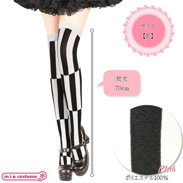 | ゴシック&ロリータファッションと相性抜群!ブロック模様の白黒ストライプ柄ニーハイストッキング70cm。 個性的でお洒落なデザインで足元を可愛くコーディネートしよう♪コスプレやハロウィン仮装と合わせても◎ ※色落ちの可能性があるため、塩素系漂白剤での漂白&水洗い不可。 ※水洗い不可、塩素系漂白剤による漂白不可、色落ちの可能性があります。 ※こちらの商品は在庫の状況によりお届けまでに4日〜7日程度かかる場合がございます。 |