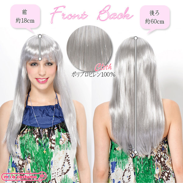 | 被るだけで大変身!個性派揃いの「セレブパーティーウィッグ」に銀髪のストレートロングヘアが新登場♪艶やかな質感と色合いや長さ、どれをとっても絶妙で、パーティはもちろんエルフや天使、魔女などのハロウィン仮装やアニメ系のコスプレ衣装、パンクやゴシック系ファッションでも活躍すること間違い無し! ※非耐熱 ※非耐熱 |