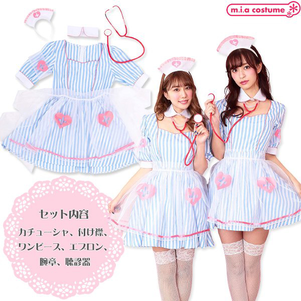 | 仮装コスプレのなかでもファッションにこだわりたいならこちら♪ストライプ生地にオーガンジーの透けた紋章とエプロンが可愛いブルーソーダナース(衣装)です。 聴診器が付いていてセット内容は充実の6点セット♪付け襟と開いた胸元が艶やかで、写真映えすること間違いなし!ハロウィン用のコスプレはもちろん仮装イベントやキャバコスとしてもどうぞ♪ ※洗濯不可、塩素系漂白剤による漂白不可、アイロンは中温で当て布使用(プリント部分のアイロンはお避け下さい)、ドライクリーニング不可 |