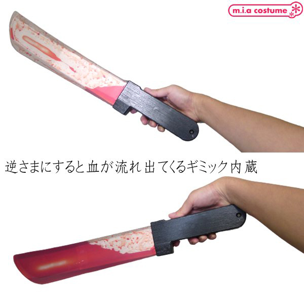 | 逆さまにすると血が流れ出てくるというギミックを内蔵した流血ナイフです♪ハロウィン関連のステージや舞台小物としても最適!お化け屋敷、文化祭などで、これを使ってみんなを驚かせよう♪流血ナタとして、ハロウィン以外にもコスプレ小物としてもアレンジが光ります!怖さがパワーアップしてオリジナリティもアップすること間違いなし♪ |