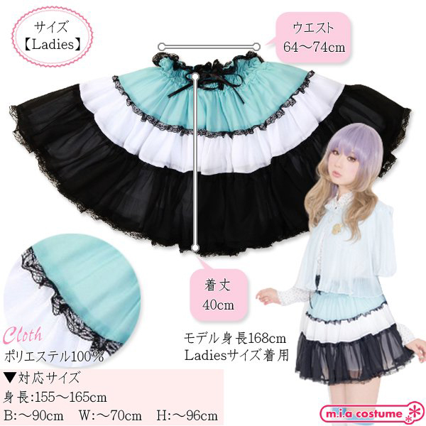 対応サイズ:身長155〜165cm・B〜90cm・W〜70cm 実寸:W64〜74cm・着丈40cm セット内容:パニエ単品(ウエストゴム) 素材:ポリエステル100% モデル身長168cm |