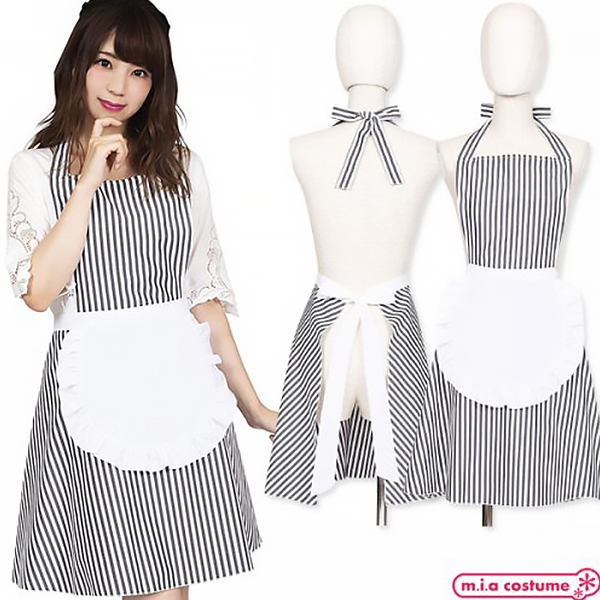 トップページ > コスプレ衣装 > 小道具(ニーソックス・猫耳) > フリルストライプエプロン ブラック