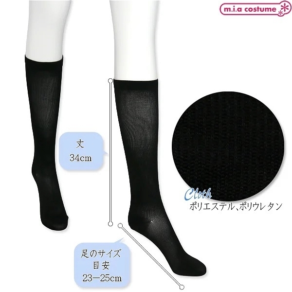 サイズ:足のサイズ目安23〜25cm・履き口〜かかと長さ34cm セット内容:ハイソックス単品 素材:ポリエステル、ポリウレタン |