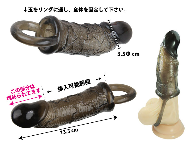 | サイズアップ&締めつけで持続効果抜群!大人気「ボス」シリーズの玉掛けリング付きペニスサック(L)。 漢を上げるスモークブラックカラーの本体は、べたつきやニオイのない、伸縮性に優れた高純度エラストマー素材を使用!浮き出た血管やカリに至るまで、リアルな造型に仕上げられています。 亀頭部分は素材が詰まっていますので、その分だけ長さもアップ!ペニスサックを広げて根元まで被せ、ズレ防止に役立つ玉掛けリングを引っ掛けるだけで準備完了!サイズアップに加え、持続性と快感の向上を狙った機能的なペニスサックです。 |