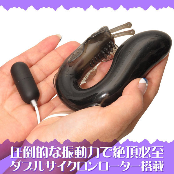 | 超強力な二点責め!神技のように性感帯を刺激する、シックなブラックの二点同時責めローター。 膣への挿入に適した丸みを帯びた先端と、蝶のような羽と触角突起の突いたブラシ型。 優雅なU字を描く滑らか曲線で、膣とクリトリスを同時に刺激!ダブルサイクロンローターが生み出す強力振動で、あっという間に絶頂へと導く快感ローターです。 単三電池×2本付属。 |