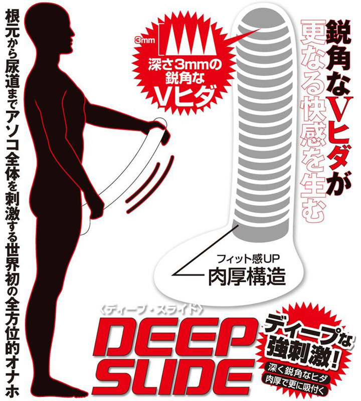 | 驚異の伸縮オナホがパワーアップ!「ディープスライド」非貫通型は、鋭角なヒダがもたらす強烈な刺激が特徴です♪手で握らずに素材の伸縮を活かし、新感覚のバキューム快感を楽しめるオナホール!内部には高さ3ミリの横ヒダがずらりと並び、ディープな刺激を生み出します。 肉厚な素材との組み合わせで絡みつき感も抜群!内径の狭い設計がフィット感を高め、ホールをスライドさせることでバキューム感も増します♪ローション漏れの心配もなく、後処理も簡単でストレスフリーなオナニーが楽しめます。 肉厚感とバキューム感をパワーアップさせた快適なオナホでハードな刺激を存分にお楽しみください。 |