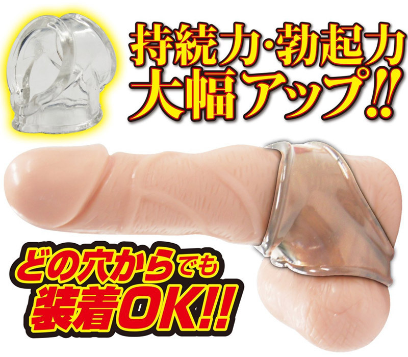 | 根元をダブルで締め付けて眠った男の底力をUP!三方向どこからでも装着できる透明コックリング。 伸縮性に富んだ素材で装着もスムーズな上、最大内径30mmでも性器サイズを問わずにぴったりとフィット!どの穴からも通せますが、内径25mmのトンネルには尿道ポケットつきなので圧迫感なく装着できます。 ロングプレイも夢じゃない、男をアゲる男性用補助グッズです。 |