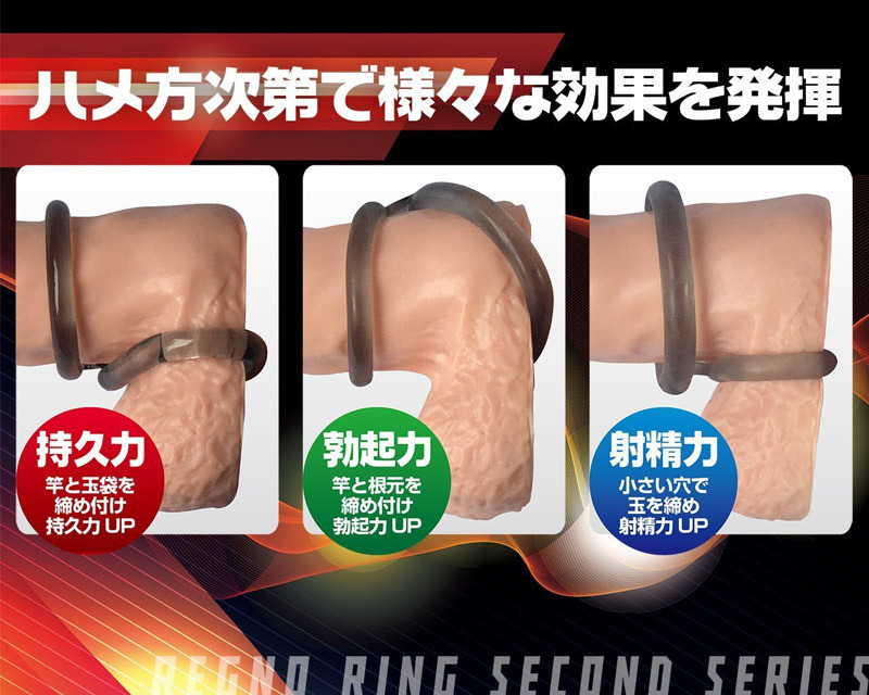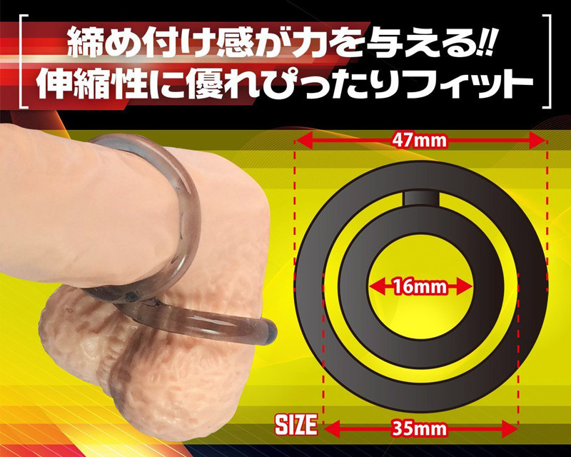 | 異なるサイズのダブルリングがハードに締め付けるシリコン製コックリング。 ●レグノコックリングシリーズ●ブラックスモークシリコン製●大小2サイズのリングが一つに●内径:大35mm・小16mm●サオとタマをハードに締め付け。 あらゆるサイズに対応する優れた伸縮素材で、大小リングはサオとタマどちらでも装着可能!ハメ方次第で持久力や勃起力、射精力までサポートしてくれる万能ペニスリングです。 |