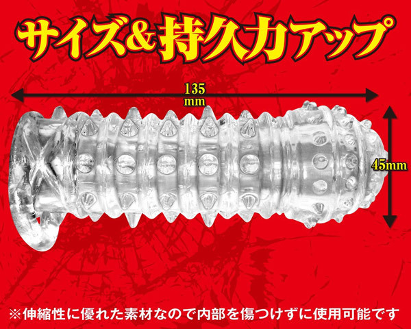 | ワイルドすぎる挿入感!刺激度高めの肉食系「極悪ストロングサック」。 ●先端まで全て覆うオールカバー。 ●肌が透けて見えるクリアタイプ。 ●玉掛けリング付きで安定感抜群。 ●最大径45mmのビッグサイズ仕様。 ●高い伸縮性素材で装着ラクラク。 ●たっぷりトゲ突起が全体を覆う。 ●優しくソフトな弾力の絶妙刺激。 ●手軽にサイズ&持続力UP。 みっちり敷き詰められた三角突起で内部をジョリジョリと攻撃しまくる高刺激系。 見た目のわりにソフトな感触で傷つけることなく、尚且つベストすぎる刺激で快感を与えます。 |