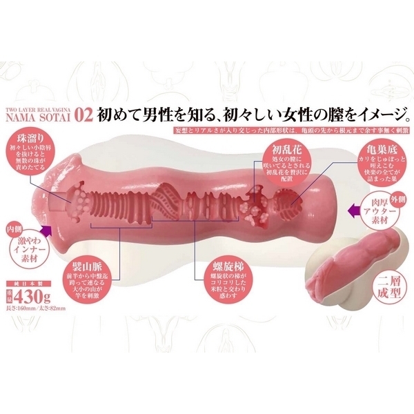 | 生素体(02)は見た目から質感、挿れ心地まで本物を忠実に再現した非貫通型オナホールです。 真っ赤なヴァギナが情欲をかき立てながら、2重構造で触れる部分と挿れる部分の硬度を分けリアルな挿入感をお楽しみいただけます♪突起に小さなツブが無数に施された「初乱花」、最奥の網状に凹凸が集まる「亀巣底」があり、女性の膣を美しく、そして気持ちよく、リアルに造型した職人の芸術が光ります。 120mlボトルローションが付属しており、膣をそのまま取り出した様な本物の感触と挿入感を見事に再現。 丁寧につくり込まれた異なる感触のインナーとアウターを別々に成型したことで、ホンモノのような挿入感をぜひお試しください。 |