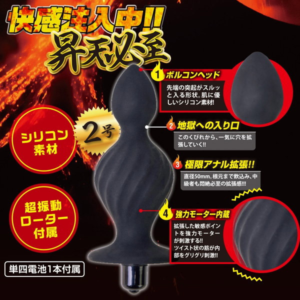 | 昇天必至の超強力ローター搭載!強烈な刺激が癖になる電動アナルプラグ「ボルコン2号」。 二段の膨らみを持つくびれボディはシリコン素材で滑らかな肌触り!表面にはツイスト筋を入れて刺激をプラス。 スルッと入る先端ボルコンヘッドの先にあるくびれを超えると、二つ目の大きな膨らみが腸内をみっちり満たします。 さらに、拡張した敏感ポイントに強力振動ローターが刺激を与える悶絶必至のアナル拡張グッズ。 中級〜上級者向けサイズの2号は全長12.5cm、最大径5cmとスーパー級の極太仕様です。 単四電池×1本付属。 |