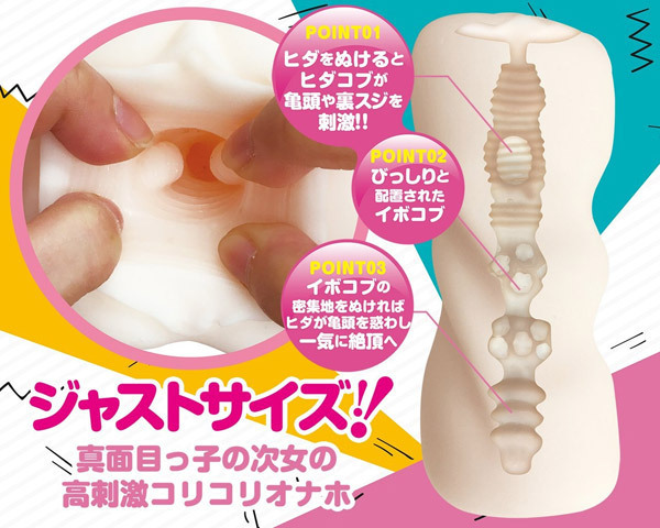 | スケベ四姉妹と中出しSEX!真面目っ子の次女モエのコリコリ高刺激オナホール「おなシスタ02 萌(MOE)」。 『おなガール』の血を受け継いだ新シリーズ『おなシスタ』が登場!ジャストサイズの内部は挿入直後のヒダコブが亀頭や裏スジを刺激!中間部にびっしりと配置されたイボコブの密集地を抜ければ、大きめヒダが亀頭を惑わし一気に絶頂へと誘います。 |
