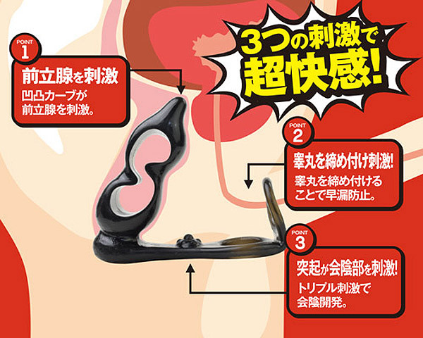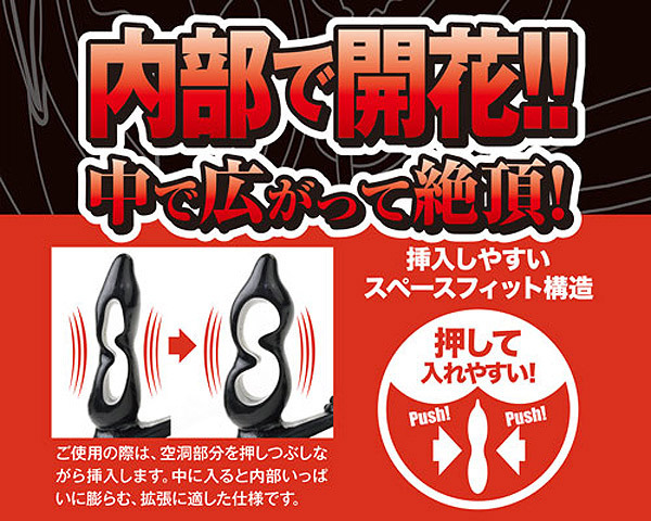 | 楽々スムース挿入&中で広がって絶頂!拡張に適したリング付きアナルディルド「スムースアナル Type1」。 中央の空洞部分を押しつぶして細身にすることで挿入しやすく、挿入後は内部いっぱいに膨らむ『スペースフィット』構造を採用。 プラグの凸凹カーブが前立腺を、リングが睾丸を、突起が会陰部を刺激する3点責めの超快感アナルグッズです。 |