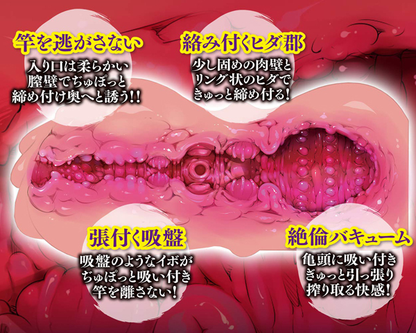 | ディープスロートのように気持ち良い体験が出来ると言われているのが、男性器を締め付け吸い上げる「タコ壺」と呼ばれる女性器。 コチラの非貫通型のオナホは、内壁に吸盤を配置することでジュポジュポと吸い付くバキューム感や、男性器へ絡み付くヒダで蛸壺名器を見事に再現しています♪伸縮性&耐久性、ともに優れた素材を使用しているため洗浄しやすく衛生的なのも嬉しいポイント!気持ち良さと使い勝手にこだわりたい方は是非お試しください。 |