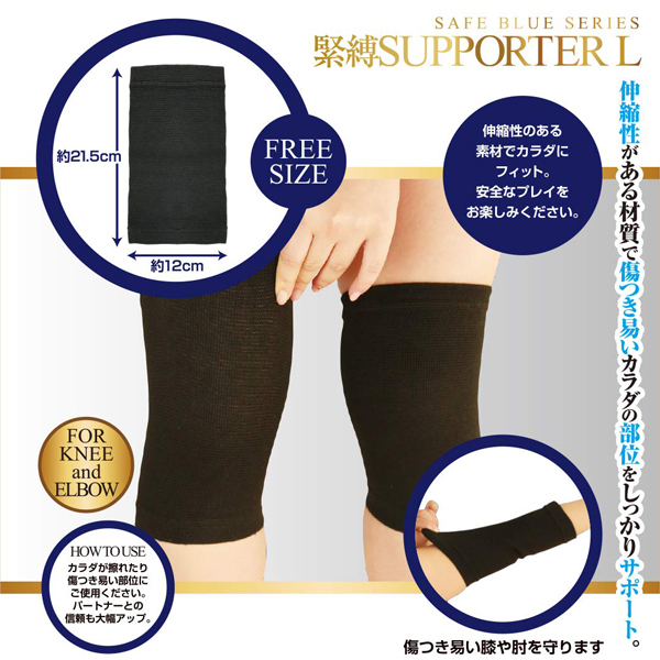 | 安心・安全で気持ちよくをコンセプトに、青山夏樹がグッズをプロデュース!『セーフブルー シリーズ』緊縛による神経圧迫事故防止のために考案されたサポーターです。 伸縮性がある材質で手首や足首の神経を保護!!擦れたり傷つきやすい部位をしっかりサポート。 パートナーとの信頼度もアップし、安全なプレイをお楽しみ頂けます。 圧迫による麻痺が起こりやすい上腕部・脇下・肘関節・手首関節・指関節・膝関節・足関節などは、筋肉が薄く構造上弱いため、緊縛の際は注意が必要です。 体と縄の間にサポーターを一枚着けるだけで圧迫事故などが防げます。 そのような緊縛プレイに最適な厚み、材質の商品になっております。 Lサイズ |