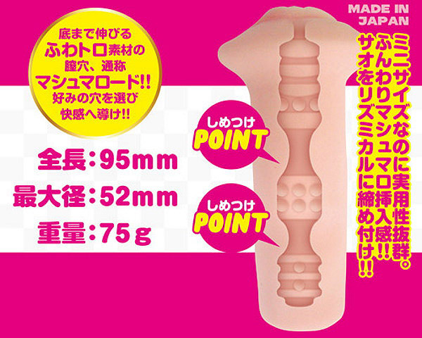 | 刺激系・緩穴系・狭穴系、3つの異なる内部形状を、ふわトロ素材で手軽に楽しめるミニオナホの決定版!底まで伸びるふわトロ素材の膣穴、通称『マシュマロード』射精感抜群な好みの穴を選び快感へ導け!刺激系のモモカはサオをリズミカルに締め付けながら膣内のイボで亀頭を責める!●高品質な純国産●非貫通タイプ●専用ローション付き |