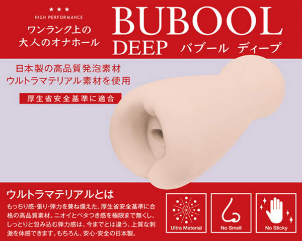 | 厚生労働省安全基準に合格の高品質の純国産素材「ウルトラマテリアル」を使用したことでニオイとベタつき感を極限まで無くし、しっとりと包み込む弾力感を実現。 今までとは違う上質な感触をご体感いただけます。 また、気泡によるクッション性が、人肌以上の弾力感を生み出しました。 最深部の「イボ」が男の快感を呼び覚ます「バブール ディープ」根元までしっかりくわえ込むバキューム構造に加え、溝の深い大き目の横ヒダが竿全体に絡みつき快感を与えます。 さらに最深部では360°配置された大小のイボ群が亀頭全体をグリグリと刺激します。 付属ローションからホールまで、すべてが日本製。 ワンランク上の大人のオナホールで最高のひと時をお楽しみください。 |