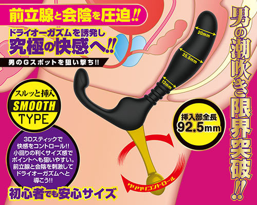 | 前立腺や会陰刺激でドライを誘発!初心者さんでも手軽に使えるアナル用グッズ。 コンパクトで小回りが利きやすくピンポイントに狙いやすい♪3Dスティックで欲しい箇所をグリグリと圧迫刺激すれば、快感が高まり男の潮吹きまで一直線!滑らかな挿れ心地のシリコン製でツルっと挿入できるSMOOTHタイプ。 |