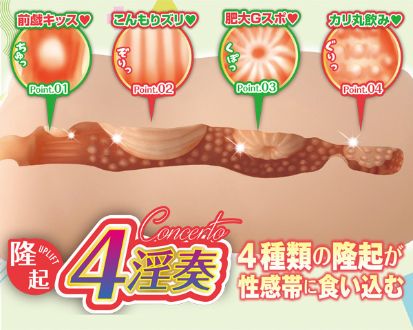 | 経験人数は4人、恋もエッチも楽しめるお年頃「朝比奈カホ」は、4種類のギミックで貴男を誘惑!吸い付いたり擦ったり、性感帯に食い込む4つの隆起が奏でる4淫奏が快感を高めていく♪全長は12.6cm、横幅6.8cmのコンパクトサイズ。 305gのもっちり肉厚仕様◎ローション付 |