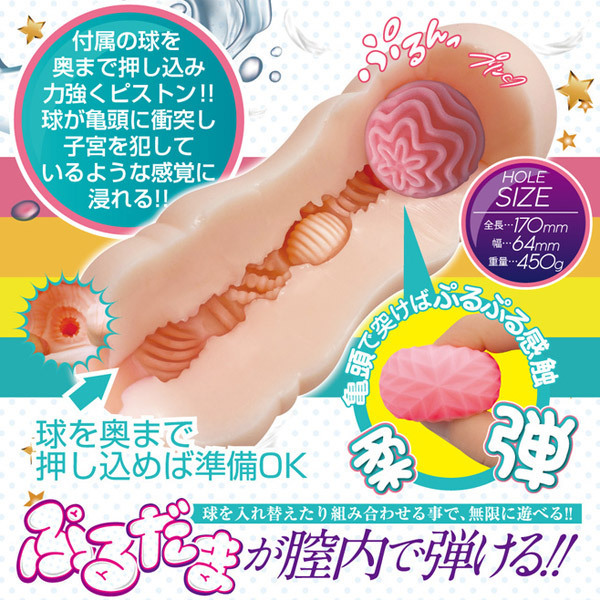 色んな球を突いて子宮姦を楽しもう!内部は奥へ引きずりこみゴリゴリ刺激する横ヒダ絡むイボ構造◎ローション付属