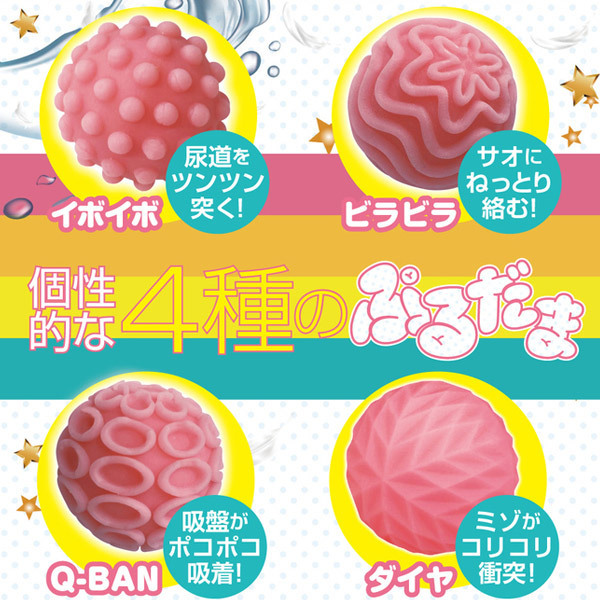 付属のボールを最奥に入れることでピストンするたび亀頭を刺激、子宮を突いているような感覚を味わえる♪イボやリング状、ダイヤ模様、ビラビラなど全4種が付属。