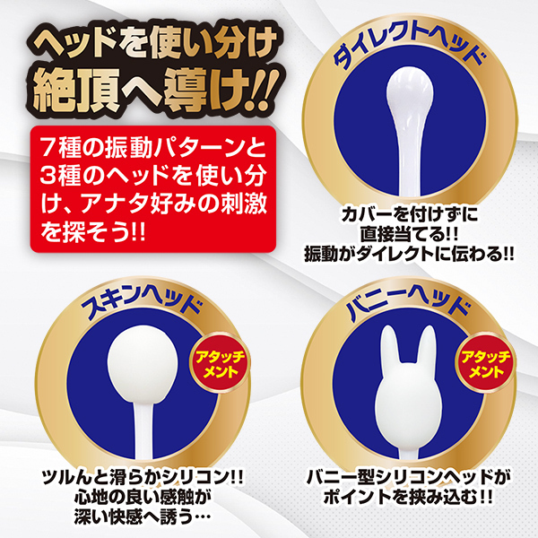| クリや乳首にも♪使い勝手バツグンのピンポイントローター「ワンポイントスティック」です。 アタッチメントが2種類付属していてクリや乳首などのピンポイント刺激に威力を発揮!生活防水だからメンテナンスも簡単で極小ヘッドが気持ちいいところを集中して刺激してくれます♪7段階の強力振動とアタッチメントヘッドはカバーを付けずに直接当てたり色々と楽しめます!カバーを付けずに直接当てて気持ちいいダイレクトヘッド、ツルんと滑らかシリコンのスキンヘッド、ポイントを挟み込むバニー型シリコンヘッドと用途にあわせて好みの刺激を使い分けよう♪USB充電式で約120分の充電で連続使用時間は約45分。 振動数は7段階、生活防水設計で静音設計。 強弱3段階で幅広くお楽しみ頂けます♪ |