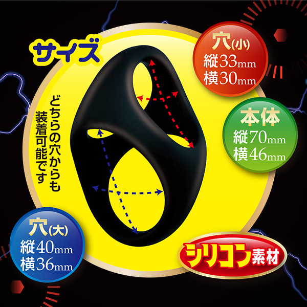 パッケージ:14.8×9.5×4.8cm 本体:全長7.0cm・全幅4.6cm、穴(小)縦3.3cm・横3.0cm、穴(大)縦4.0cm・横3.6cm 素材:シリコン 重量:15g |