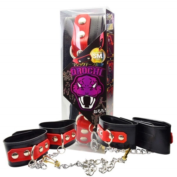 | 肌触り・質感、触れば分かる素材に拘った日本製本格SM拘束具シリーズOROCHI。 質感が違うからよりリアリティのあるSMプレイが楽しめる♪雰囲気を盛り上げる高級感のある設えが感情を刺激する!両手両足の自由を抑制された上に、さらにジョイント拘束チェーンで自在に変態プレイが楽しめる! お手軽なマジックテープ拘束。 カラー:ブラック |