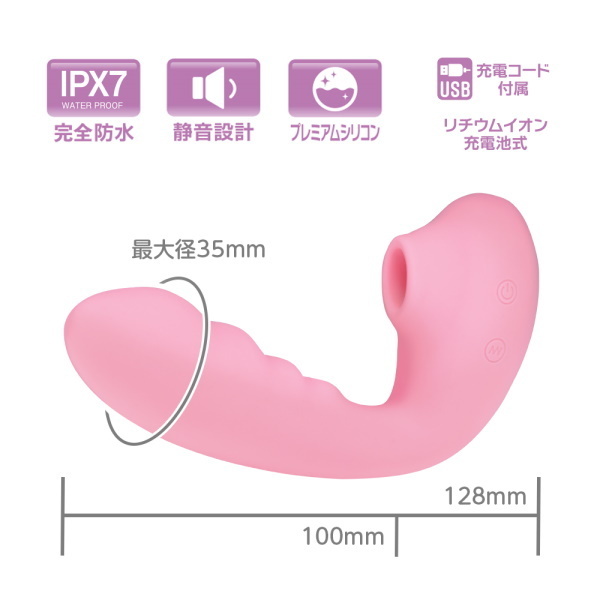 | SNSで話題の<吸うやつ>吸引しながら振動を楽しめるくの字形状に温感機能搭載でリアリティUP!振動部分の形状や太さにもしっかりと拘った納得のアイテムです。 しかもIPX7の完全防水性能設計だからしっかり洗えて水場での使用も問題ありません。 120分充電で最大60分使用可能●カラー:ピンク |