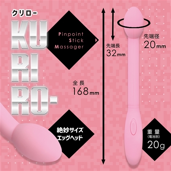 | 操作性はシンプルな振動オンオフのみの「クリロー」。 こちらは女性に人気のピンクカラーで、気持ちいい部分を優しく振動責めできる超軽量なバイブスティックです♪スマート形状で握りやすく、コンパクトで使い勝手の良い女性のセルフプレジャーアイテム!持ちやすくて軽いので、普段のセルフ使いに大活躍すること間違いなしです♪電源は単4電池1本となります。 |