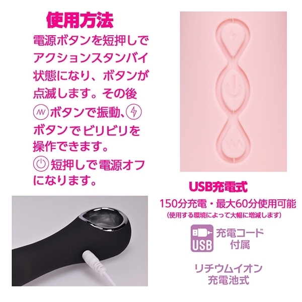 | ビリビリ低周波が刺激的な話題の膣トレバイブ、心地良いビリビリに強力な振動で他では味わえない快感を楽しめます。 シンプルなストレート形状に肌心地の良い高品質マットシリコンで滑らかな感触。 IPX7の完全防水性能だからしっかり洗えて衛生的に遊んで頂けます。 振動・ビリビリ刺激は個別に操作が可能で、ビリビリ7パターン。 振動12パターン。 150分充電で最大60分使用可能(使用環境によって大幅に増減します)●カラー:ピンク |