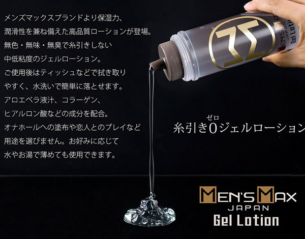 | <MEN'S MAX>糸引きゼロで即拭き取り可!メンズマックスの高品質ジェルローション。 ●スタンダードな中高粘度●拭き取り簡単ジェルタイプ●高い潤滑力ながら糸引きなし●使いやすい無色・無味・無臭●お肌に優しい天然成分配合●内容量360ml入り。 浮かび上がる金のロゴが印象的なメンズマックスのジェルローション!ジェルタイプはティッシュ等でも拭き取れて簡単に洗い流せるので、オナホールへの使用に最適!アロエベラ液汁・コラーゲン・ヒアルロン酸など、お肌に嬉しい成分も配合されています。 |