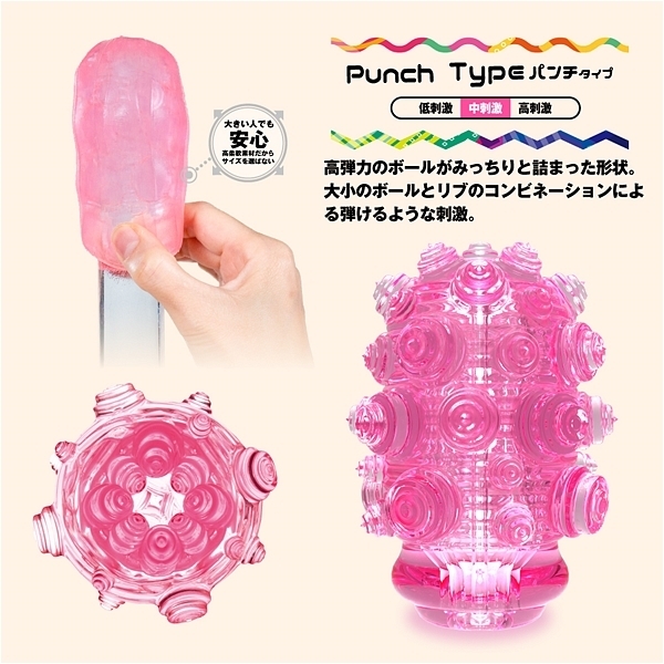 | 大粒デコボコ刺激がキュット締めつけ!裏返す事で未知なる体験と利便機能を持った変化する密集体ホール。 「Qutto−キュット−」は従来よりも突起が大きく、肉厚になった大粒のデコボコ刺激を搭載。 使用時に本体の凹凸面を内側に返すことで、内側に向かって大粒のデコボコ刺激が密集。 キュット締めつけることで、「未確認の触感」を体験することができます。 パンチタイプは、高弾力のボールがみっちりと詰まった形状です。 大小のボールとリブの組み合わせによる弾けるような刺激が特徴です。 この商品には個装のローションが付属しています。 |