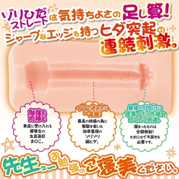| 家庭教師になって生徒とエッチなお勉強!シャープなエッジの横ヒダがゾリゾリ連続刺激!思春期娘は横ヒダメインのゾリゾリ強刺激ホール。 挿入直後から始まる怒涛のゾリゾリ刺激。 エッジの効いた細めの横ヒダが360度余すところなく擦り上げます。 道中はキュッと締め付ける狭穴仕様。 最奥のバキュームポイントにはポコポコイボを配置して最後の最後まで刺激し続けます。 重量は391gと、肉厚感と扱いやすさを両立しました。 絶え間なく押し寄せるゾリゾリ刺激を、お勉強そっちのけで楽しんでください。 |