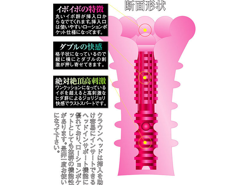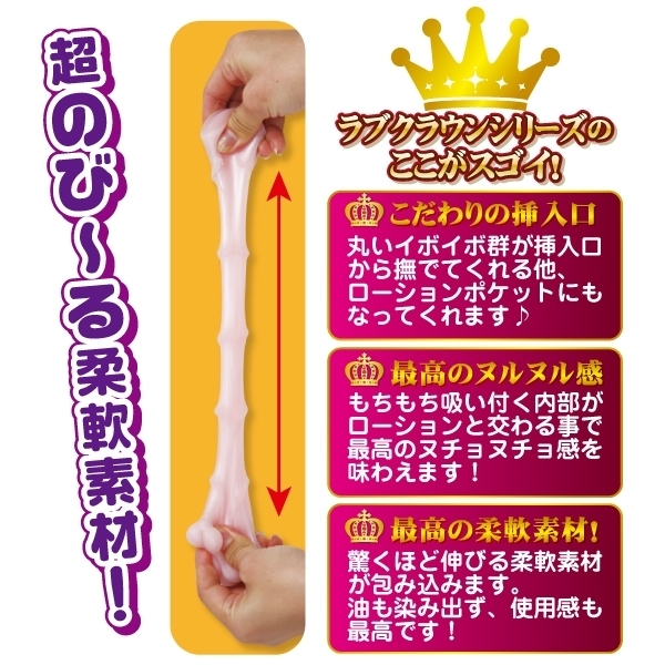 | こんなによく伸びるホール見たことない!最大約92cmも伸びる、超もっちり柔軟素材のオナホール(非貫通型)。 内部は格子状で縦横から波のように刺激します。 最奥直前にあるイボを超えると横ヒダが出現し、絶頂へ導く高刺激を送ります。 ローションポケットにもなるイボイボ群のヘッドインサポート形状で、勃ちにくい時も根元まで挿入を手助けしてくれる次世代オナホールです。 ※実際に限界まで伸ばそうとすると本体が破損しますので、使用する際は通常のオナホールと同様にお取り扱い下さい。 |