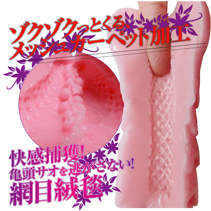 膣内上部に張り巡らされた網目加工に捕まったら最後、ムスコを逃しません!さらに、奥まで続く突起の花道が裏スジをクニュクニュッと擦り上げる快感構造。