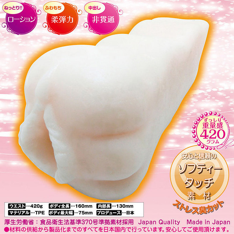 | マッタリ長〜く楽しみたい!そんなユル系ユーザーの為に作られた極上ふわとろオナホール。 ●新開発のソフティータッチ素材を採用●究極のふわとろ素材が生み出す驚異の肉厚感●カリをしっかり受け止めてくれるくぱぁ仕様●うねる極細膣道の幅はたった1ミリ●無数のイボが吸い付き絡みつく膣道テクスチャー●ストレス臭もカットされた安心の日本製。 握ると指の隙間からむにゅ〜っと溢れ出るほどの柔らかさ!長めのストロークでディープなまったりオナニーを楽しめるオナホールです。 |